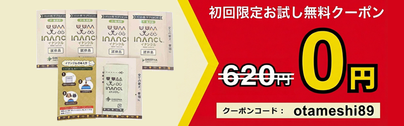 「イナンクル お試しパック(試供品4包入り)」は、初回のお客様(会員様限定)で1点限り無料にてご提供しております。